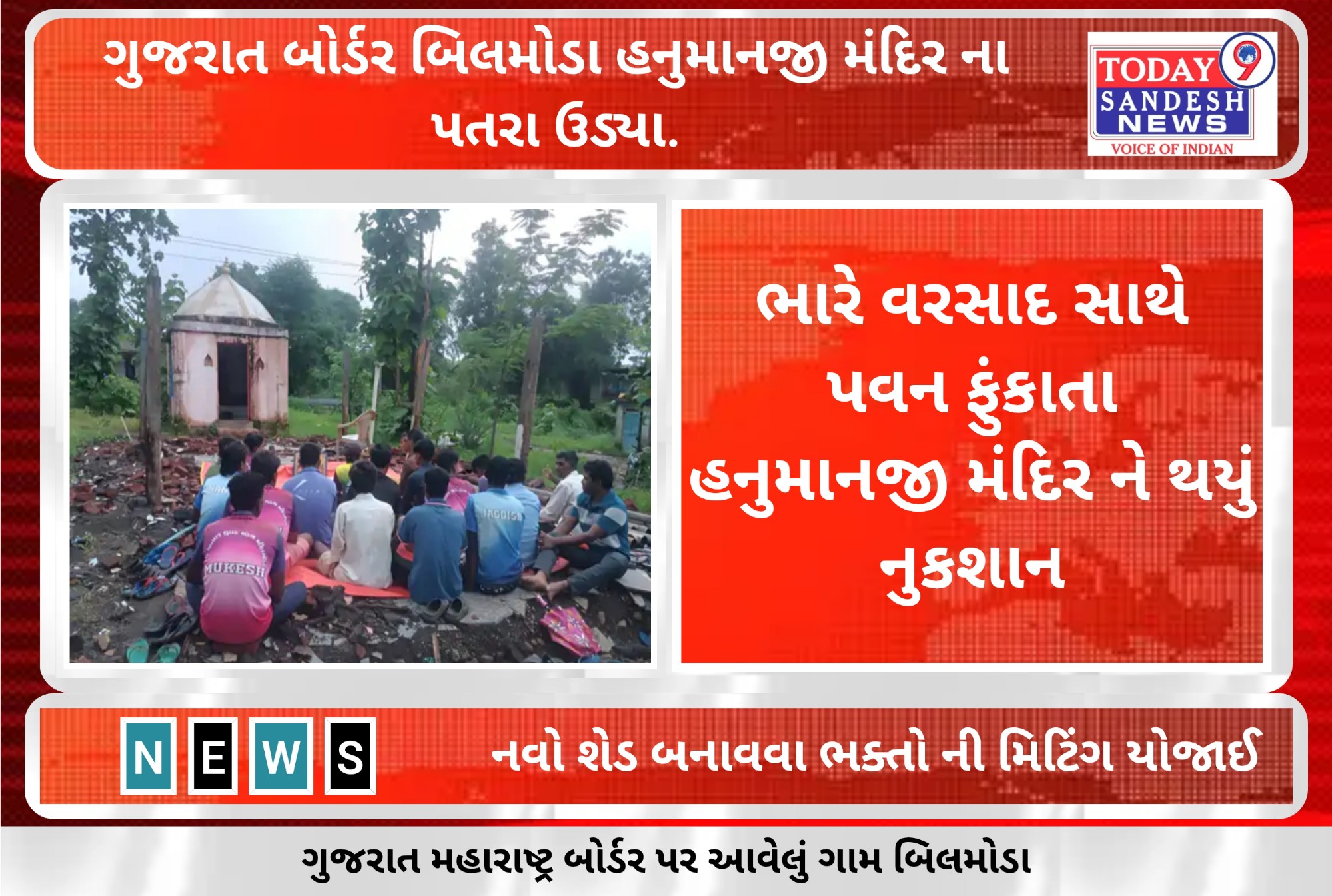 વાંસદા થી મહારાષ્ટ્ર બોર્ડર પર ગામ બિલમોડા હનુમાનજી મંદિર ના પતરા ઉડ્યા